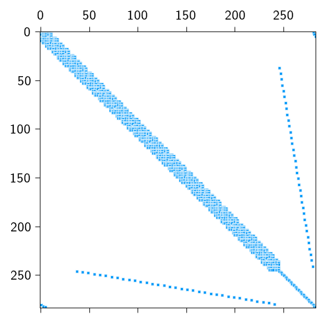 Figure 9.1: The \(\mathbf{B}\) matrix showing the sparsity pattern due to the tie constraints