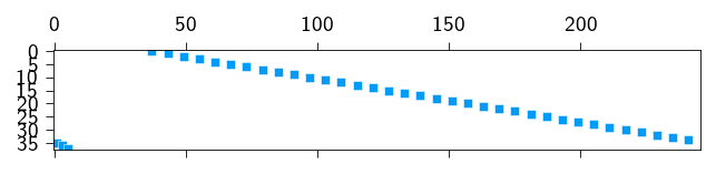 We can see below the sparsity pattern of the \(\mathbf{B}\) matrix. The non-zero entries are the rows of the \(\mathbf{B}\) matrix that correspond to the constraints applied to the nodes of the interface.