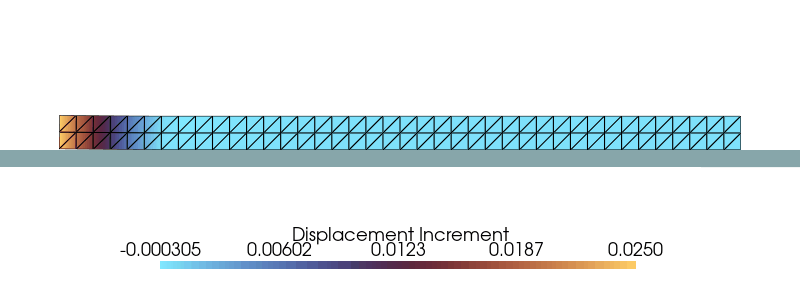 An animation of the debonding process is shown below. The displacement increment for each step is shown in the scalar bar.